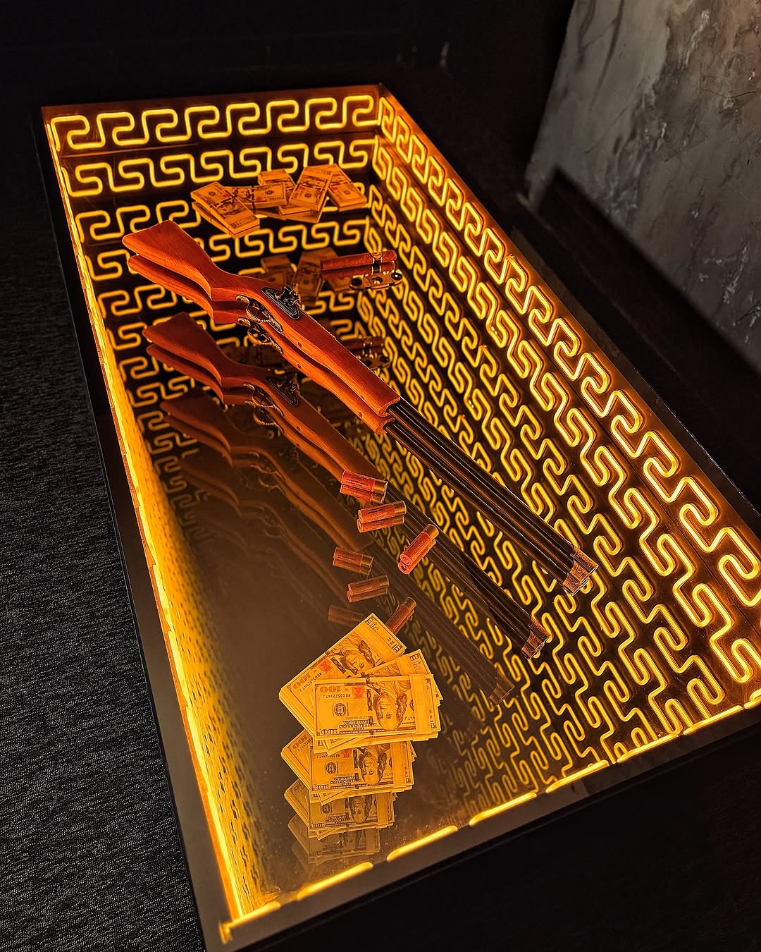 Plongez dans l’univers YanGlow, une table d’exception où verre trempé, néon intégré et packs de dollars décoratifs s’unissent pour créer une pièce inspirante et lumineuse.